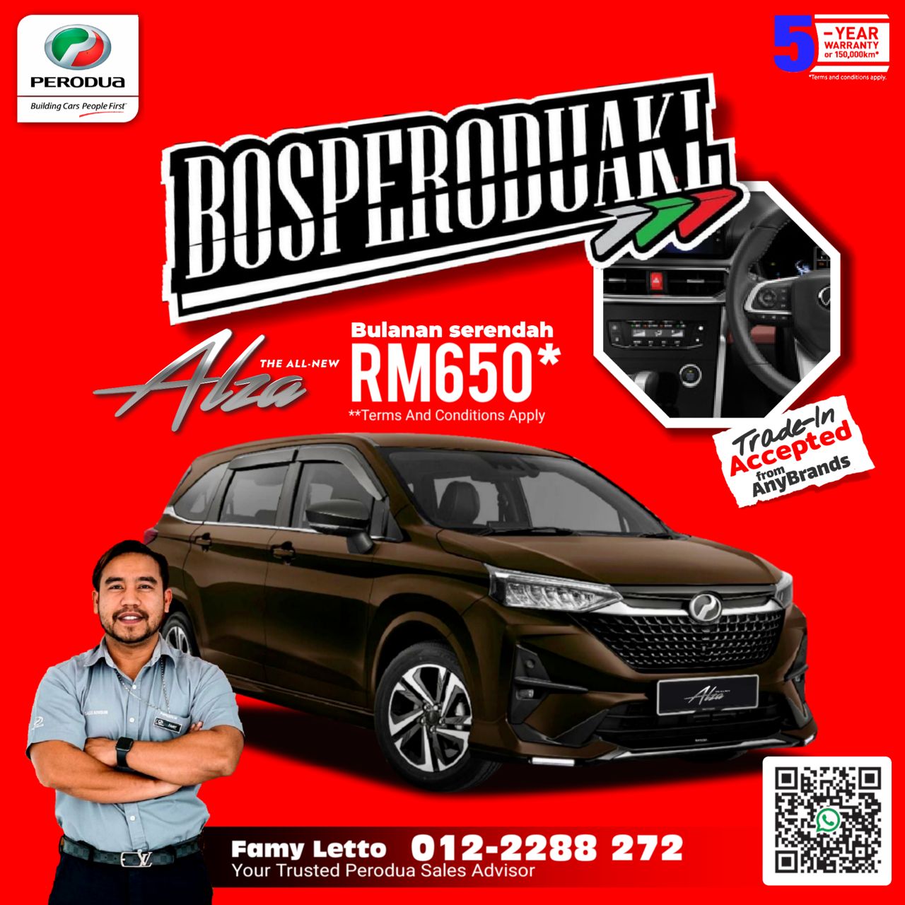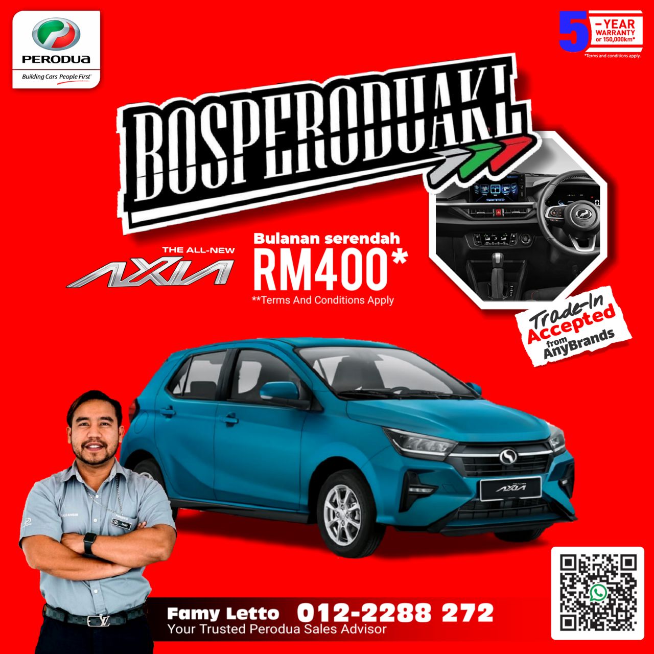 Contact me now for any inquiries regarding your new Perodua car booking.
